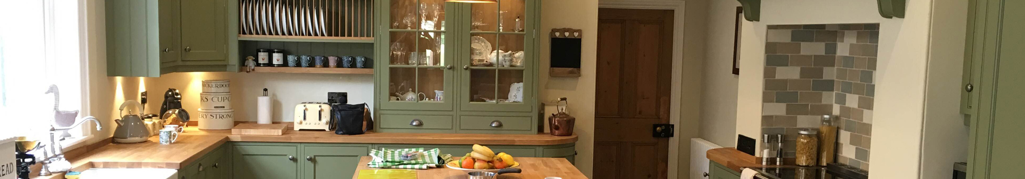 Painted in Farrow & Ball Clunch & Railing Solid Oak Worktops
